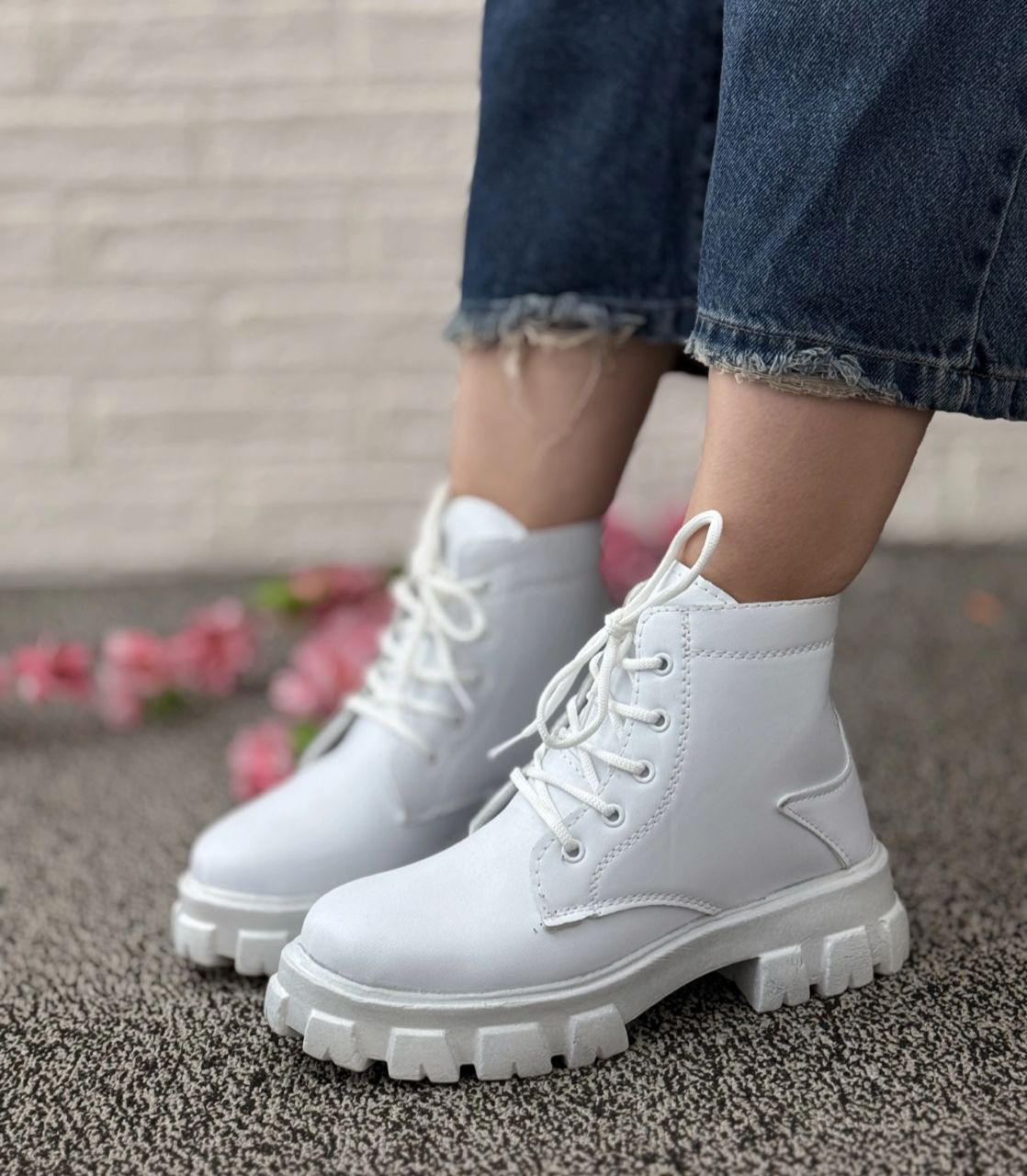 بوت بسیار زیبای زنانه مدل سندی در رنگ های مشکی و سفید با رویه چرم صنعتی و لژ 2 سانت قالب استاندارد جهت استایل های خوش پوش موجود است.